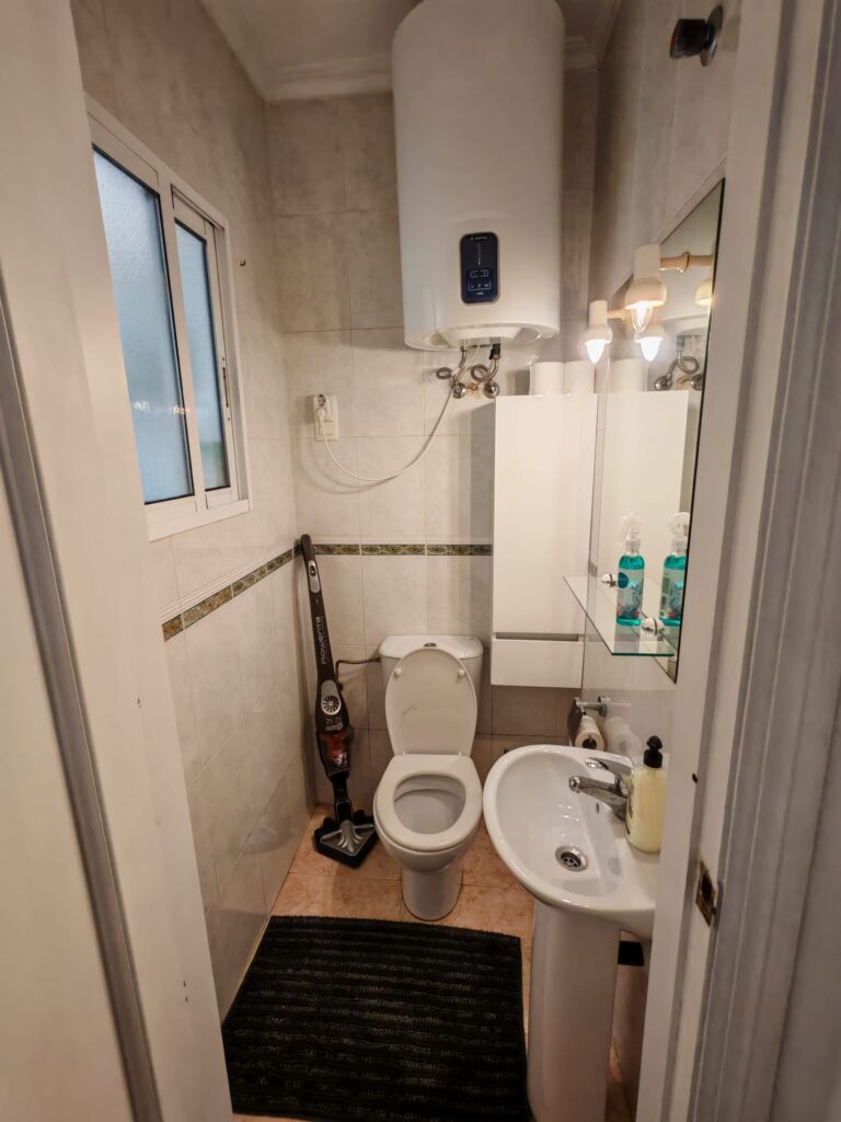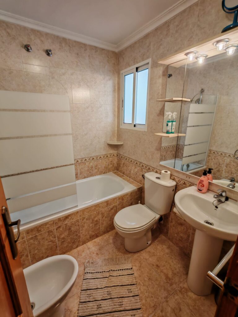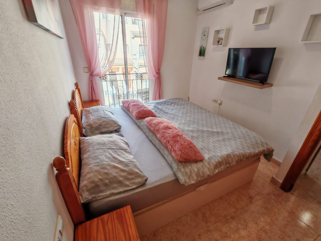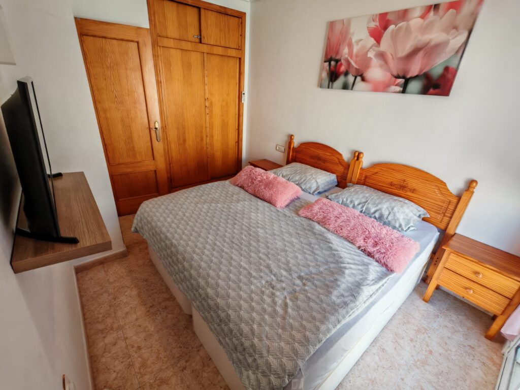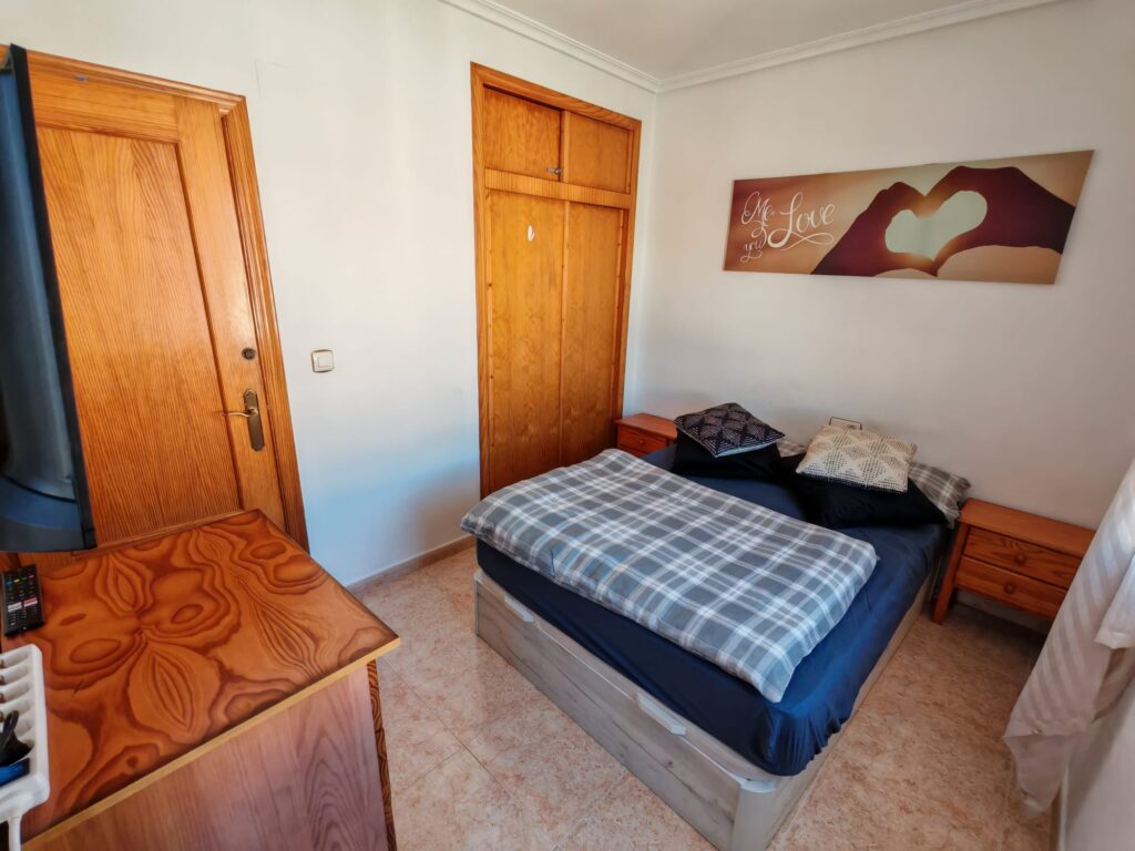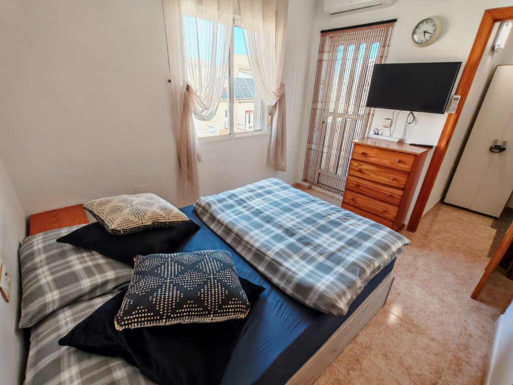W naszym klimatyzowanym apartamencie są dwie oddzielne sypialnie, jedna łazienka, dobrze wyposażona kuchnia i pokój dzienny. Przy pokoju dziennym jest balkon na którym znajdziemy stół z krzesłami. Po schodach na górę wejdziemy na solarium (słoneczna część służąca do wypoczynku / opalania) na którym są meble ogrodowe oraz piękny widok na hiszpańskie domki i oczywiście błękitne morze. Teren na którym znajduje się apartament jest ogrodzony. Na terenie kompleksu – zaledwie niecałą minutę od apartamentu znajduje się czysto utrzymany basen (z brodzikiem dla dzieci), egzotycznymi parasolami oraz miejscem do opalania do wyłącznej dyspozycji gości. Nasz apartament jest doskonałą bazą wypadową jeśli chodzi o zwiedzanie, do wszystkich większych okolicznych miast bogatych w zabytki i atrakcje (Alicante, Murcia, Cartagena, Elche – około 40 km), czy też stolicy regionu Valencii (około 200 km – ze wspaniałym Centrum Sztuki i Nauki oraz największym w Europie oceanarium i delfinarium). Większość dróg do tych miast to bezpłatne autostrady, tak więc szybko i bezpiecznie dotrzemy do celu.
