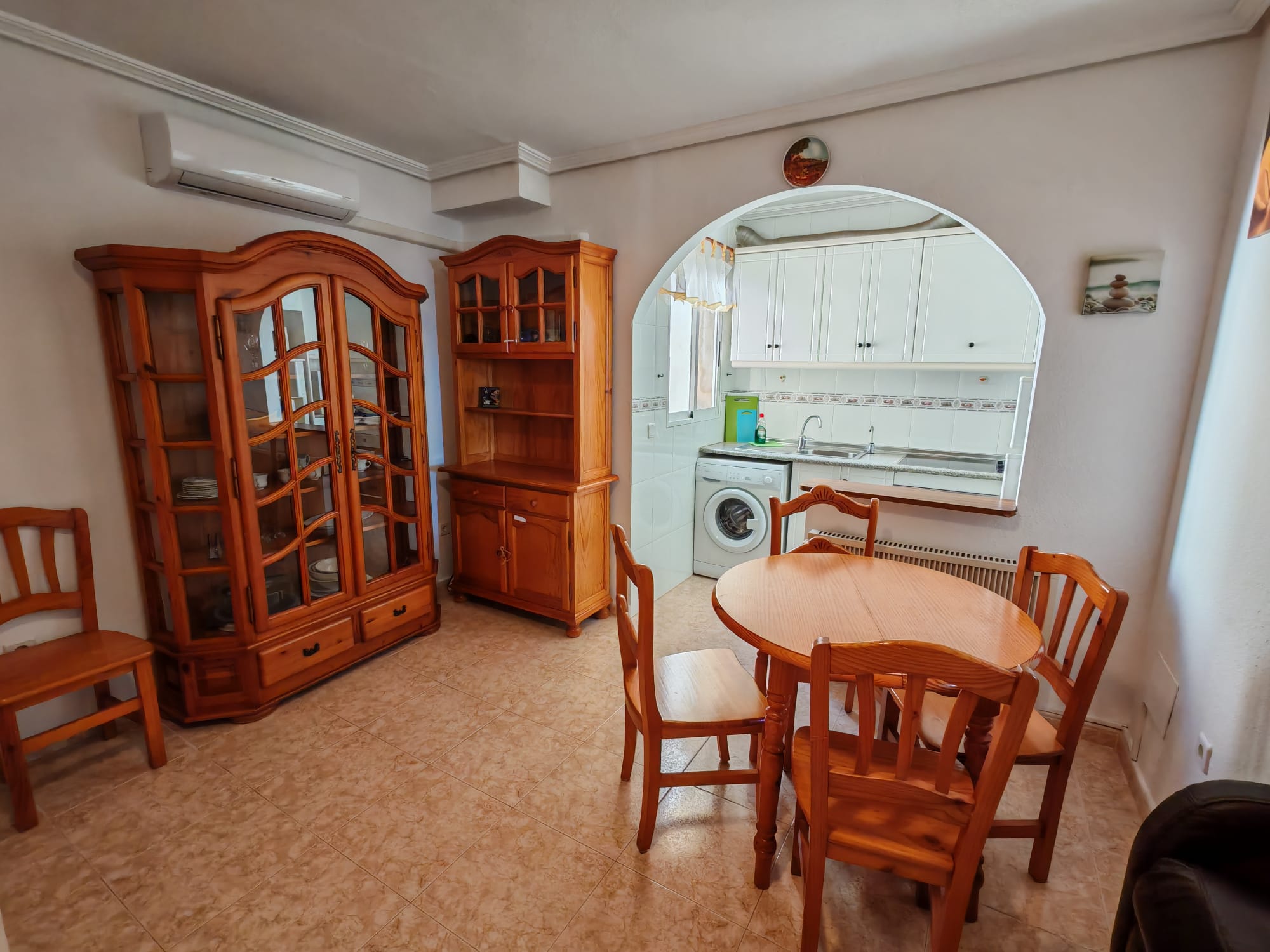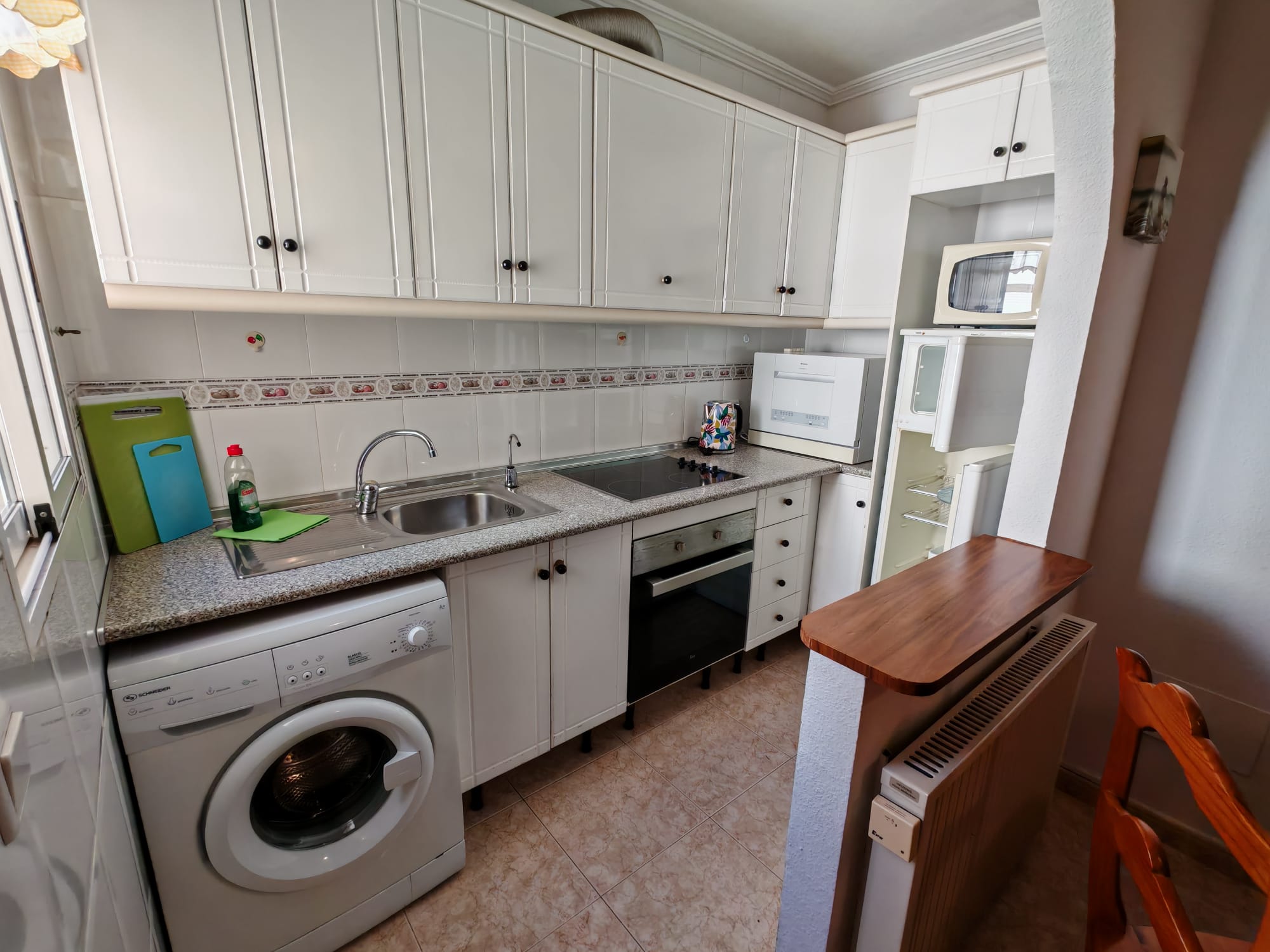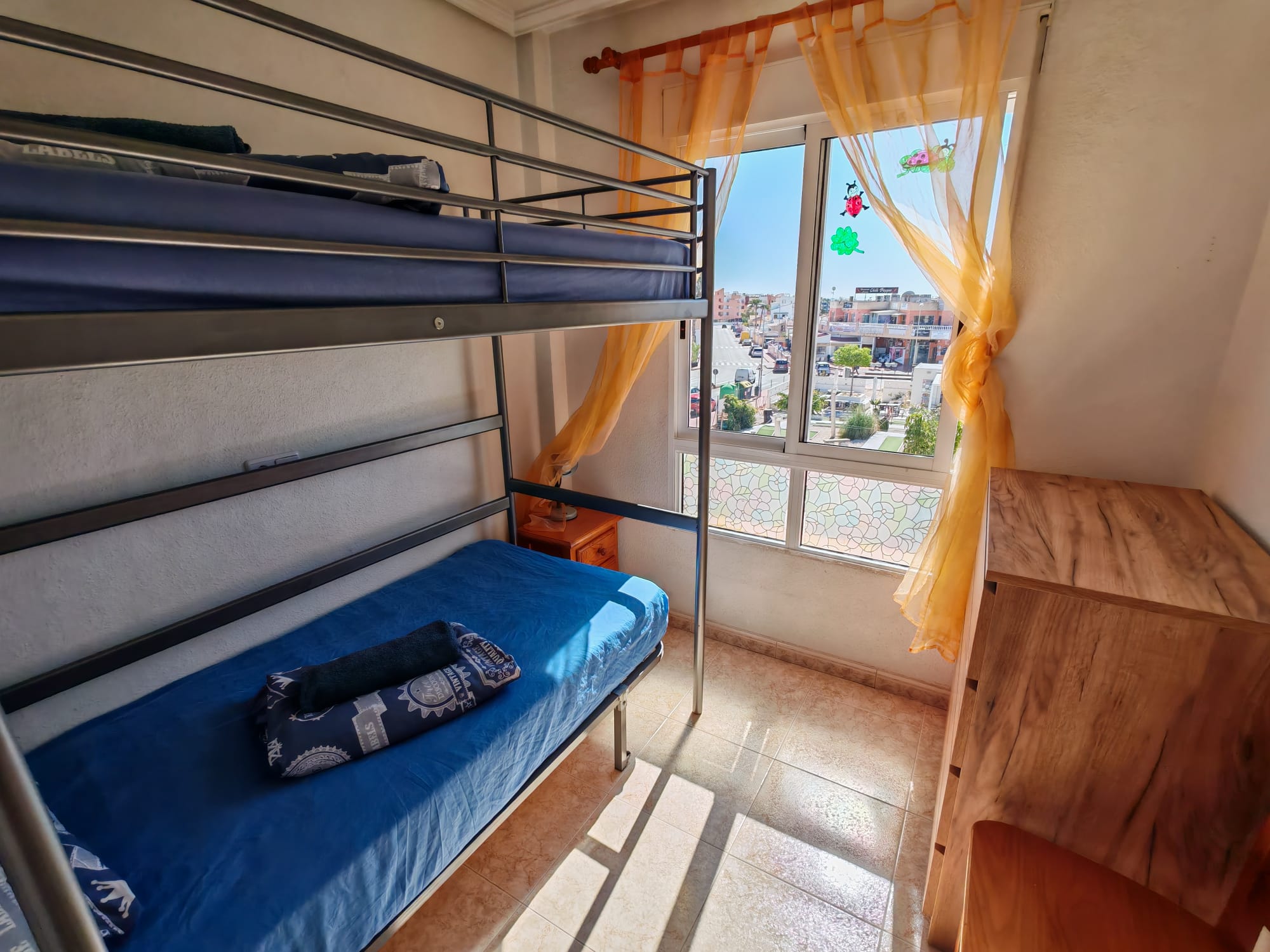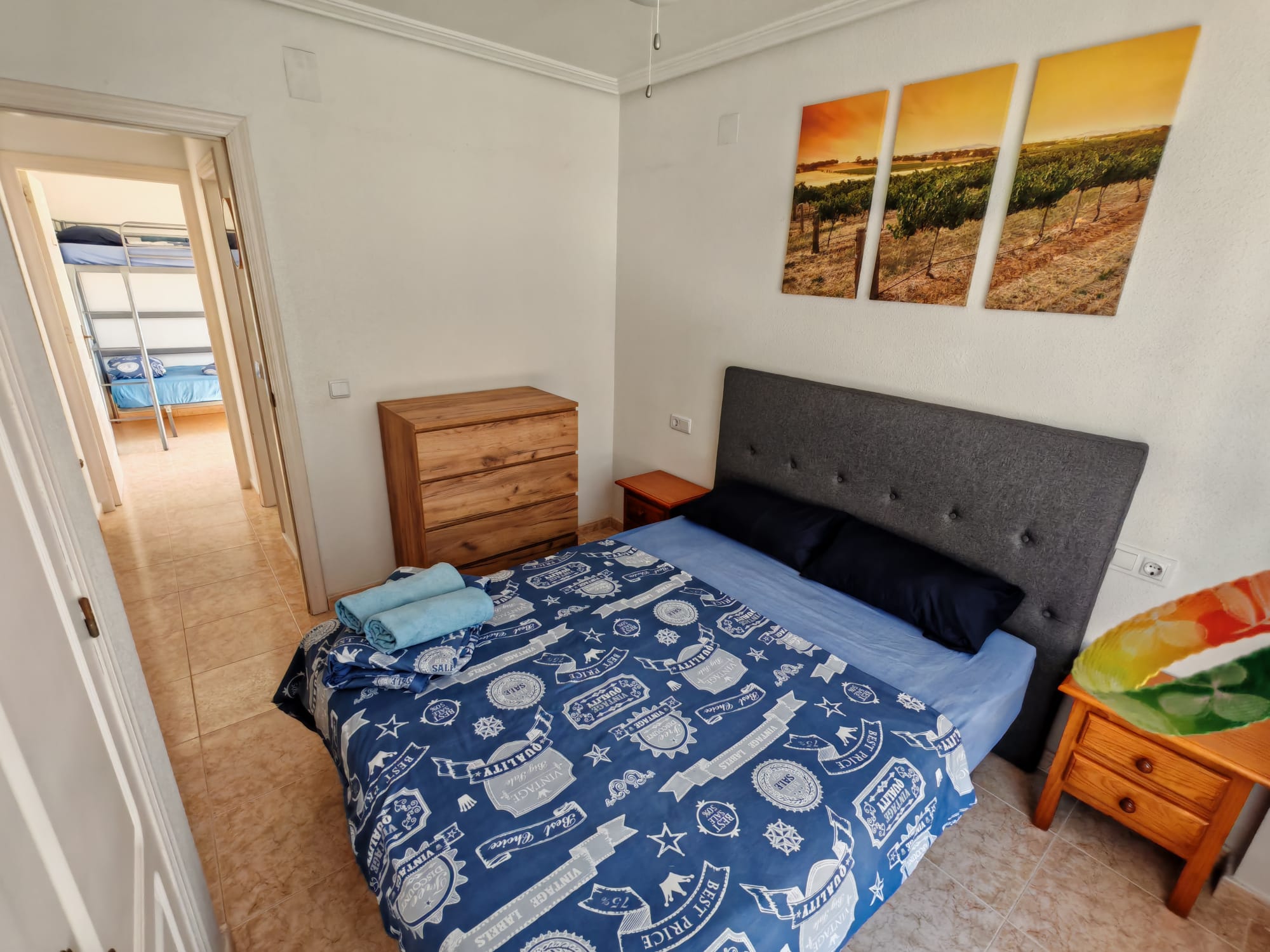 W naszym klimatyzowanym apartamencie są dwie oddzielne sypialnie, jedna łazienka, dobrze wyposażona kuchnia i pokój dzienny. Przy pokoju dziennym jest balkon na którym znajdziemy stół z krzesłami. Po schodach na górę wejdziemy na solarium (słoneczna część służąca do wypoczynku / opalania) na którym są meble ogrodowe oraz piękny widok na hiszpańskie domki i oczywiście błękitne morze. Teren na którym znajduje się apartament jest ogrodzony. Na terenie kompleksu – zaledwie niecałą minutę od apartamentu znajduje się czysto utrzymany basen (z brodzikiem dla dzieci), egzotycznymi parasolami oraz miejscem do opalania do wyłącznej dyspozycji gości. Nasz apartament jest doskonałą bazą wypadową jeśli chodzi o zwiedzanie, do wszystkich większych okolicznych miast bogatych w zabytki i atrakcje (Alicante, Murcia, Cartagena, Elche – około 40 km), czy też stolicy regionu Valencii (około 200 km – ze wspaniałym Centrum Sztuki i Nauki oraz największym w Europie oceanarium i delfinarium). Większość dróg do tych miast to bezpłatne autostrady, tak więc szybko i bezpiecznie dotrzemy do celu.